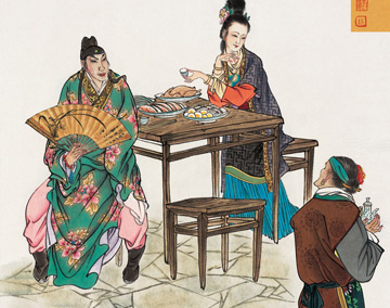 裴如海在报恩寺请潘巧云和潘父,也是先敬茶,“只见两个侍者,捧出茶来。白雪定器盏内,朱红托子,绝细好茶”。可以看出裴如海为与潘巧云会面而做了很多准备工作。