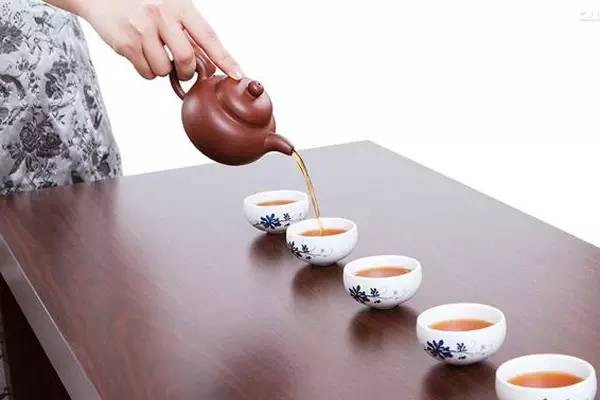 5.当然,也不宜倒得太少,倘若茶水只遮过杯底就端给客人,会让人觉得是在装模作样,不是诚心实意。